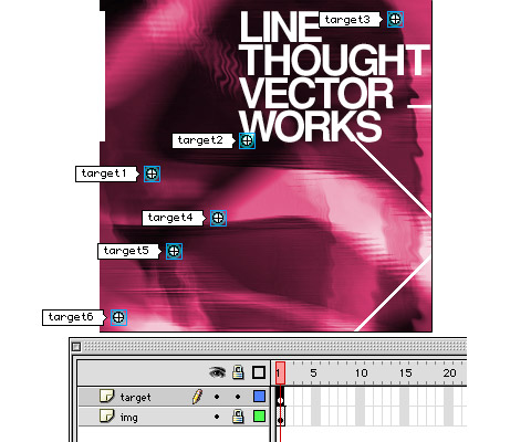 まずは、ラインを結ぶためのポイント用シンボルを作成する。 新規シンボルでムービークリップを作成し、円を描画する。ここでは、分かりやすいように絵を入れているが、空のままでの同じく機能するので、省いても構わない。